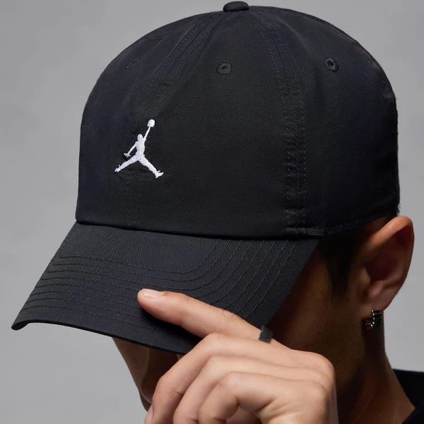 نقاب خمیده‌ی کلاسیک این کلاه، هم به محافظت در برابر نور آفتاب کمک می‌‌کند و هم ظاهری ورزشی و امروزی را به کلاه می‌بخشد. در قسمت جلوی این کلاه، لوگوی Jumpman مشهور برند جردن (Jordan) به چشم می‌خورد که با دوختی گلدوزی‌‌شده و بافتی برجسته، جلوه‌‌‌ای دوچندان را به این کلاه بخشیده است.