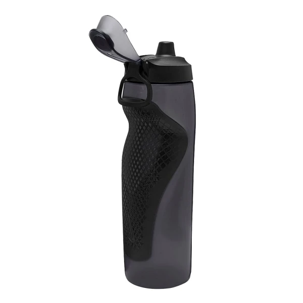A water bottle made for the athlete on the go. The flip-top lid locks into place, eliminating a bulky twist-top design. No matter where your day or workout takes you, carry this bottle by its foldable handle and stay hydrated with its squeezable material and leakproof valve.
